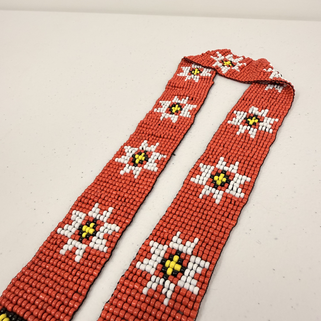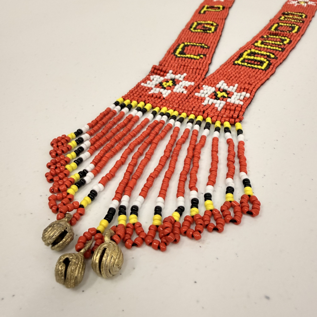 Traditional ethnic beaded necklace made with colorful beads and thread.